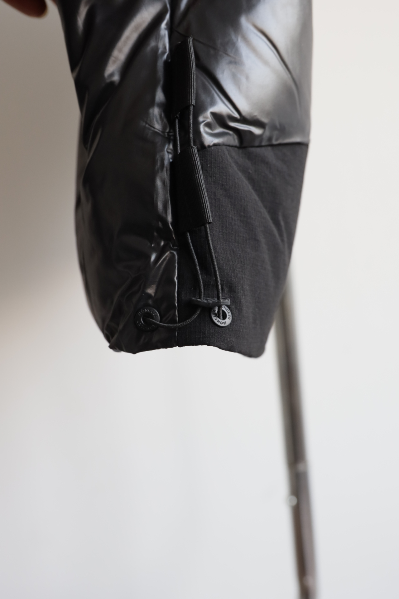 全套辅料定制;内里填充了菱格绗缝聚酯纤维棉夹层比常规的填充棉更轻盈,在潮湿环境下也依然有高效保暖性;
