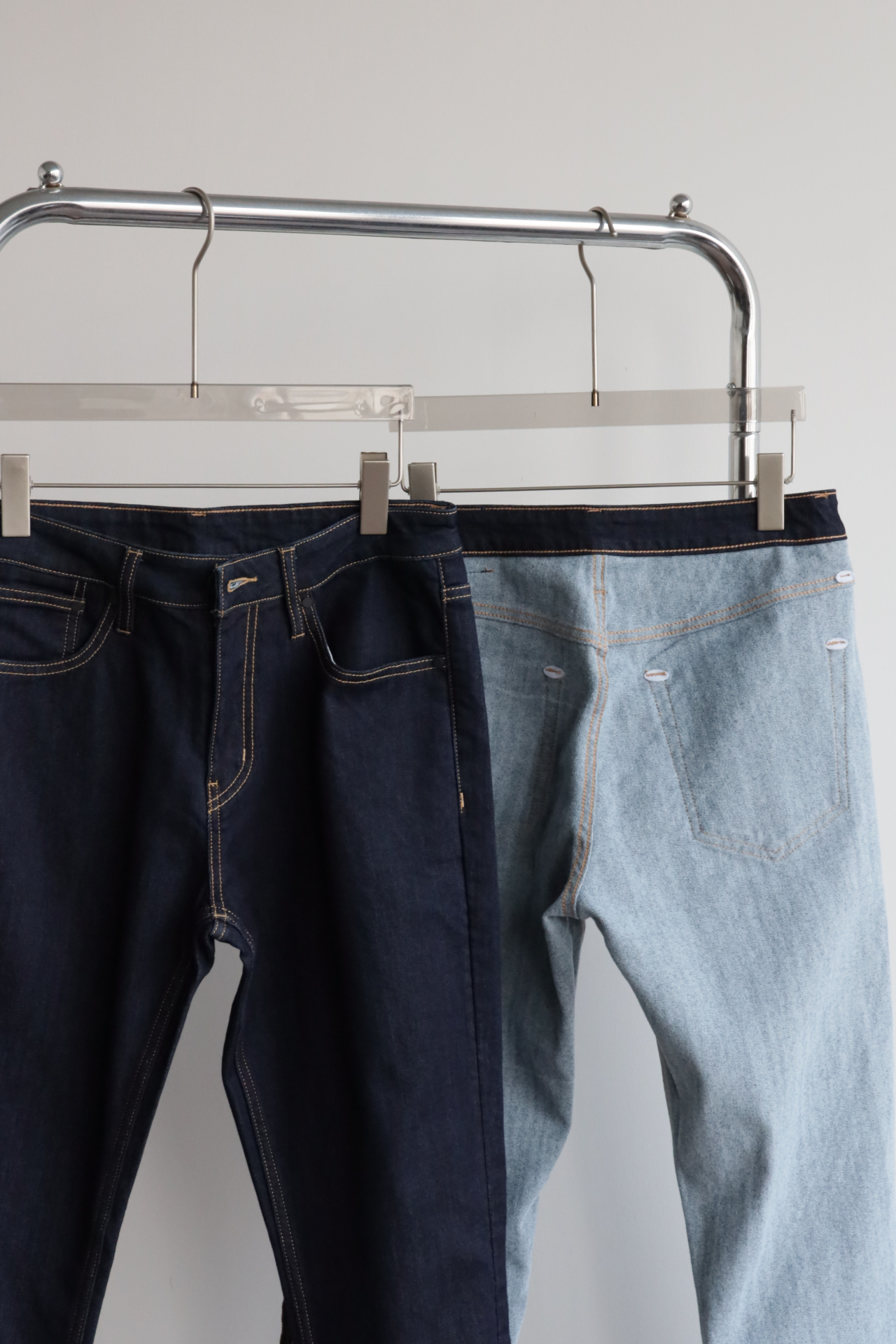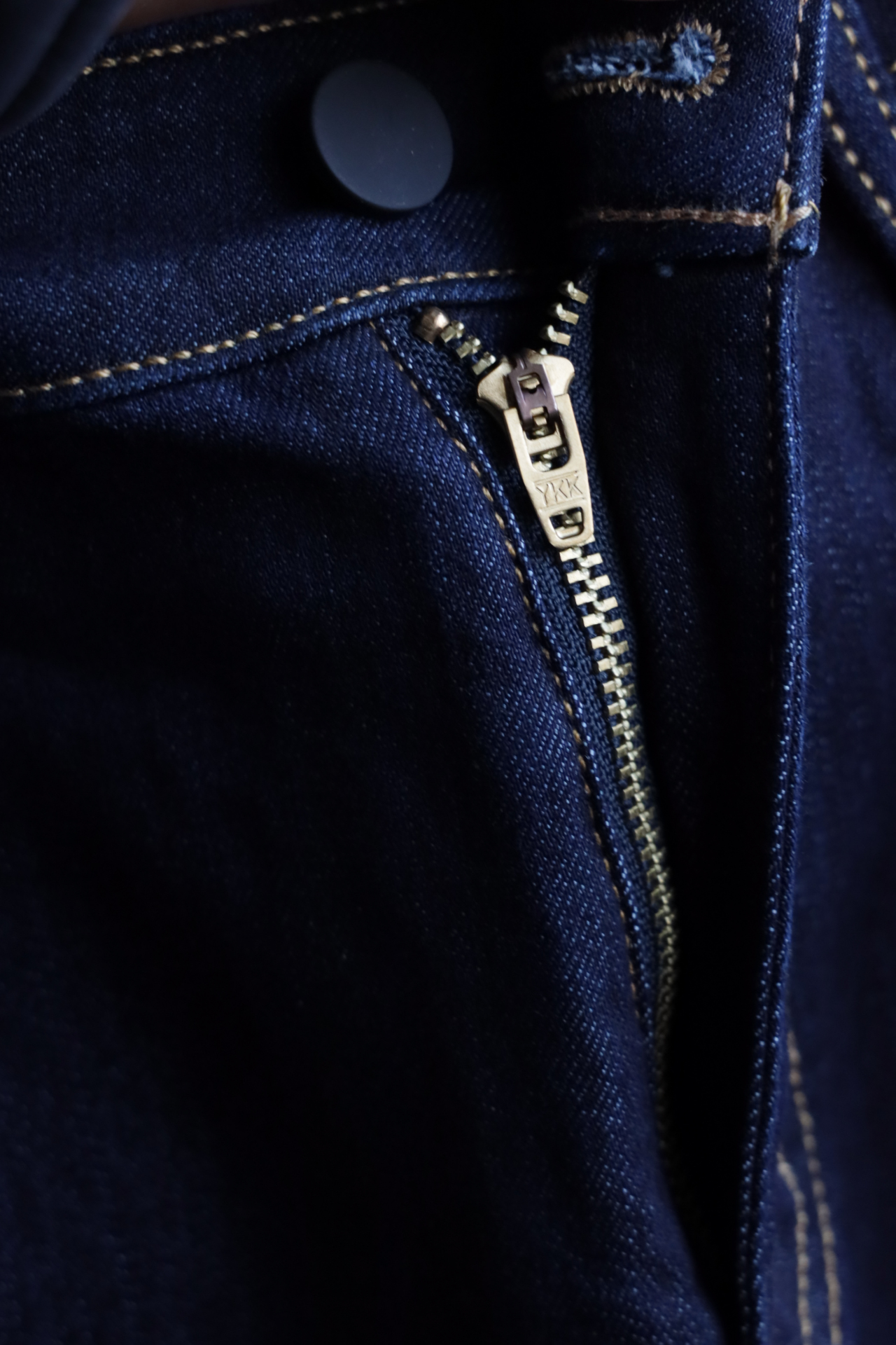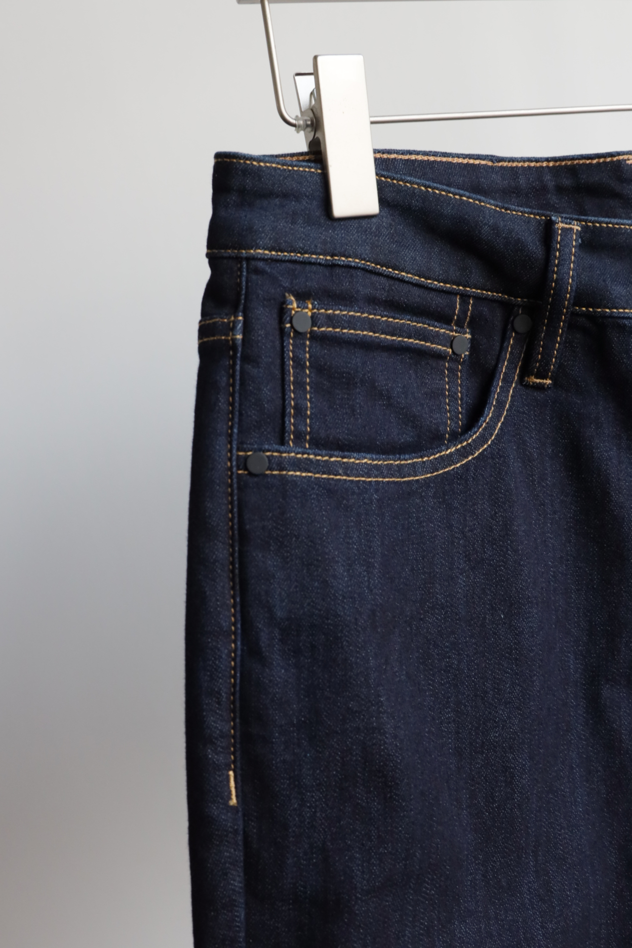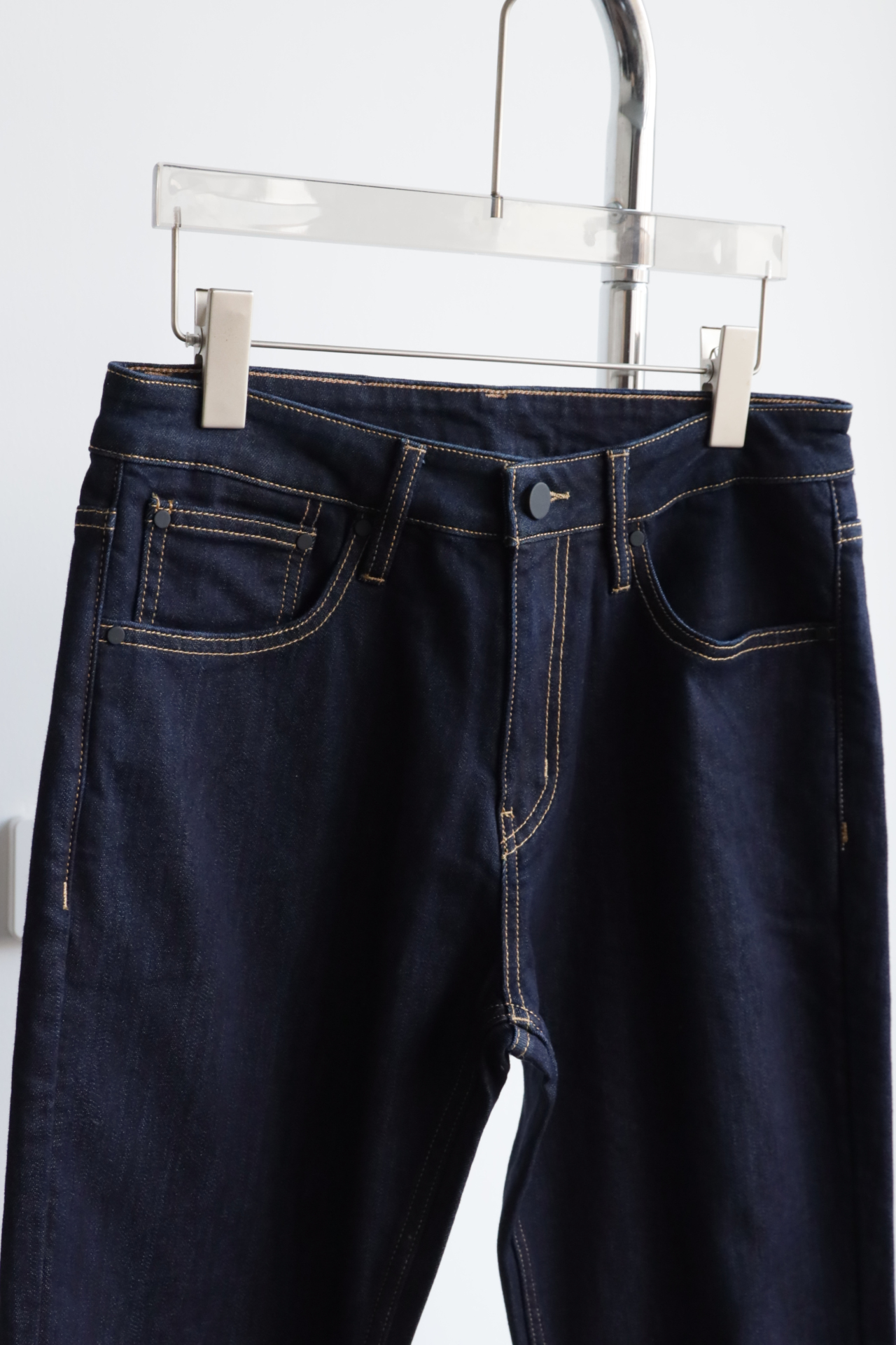 简约商务通勤经典五口袋休闲牛仔长裤,进口深蓝有机磨毛薄绒牛仔面料