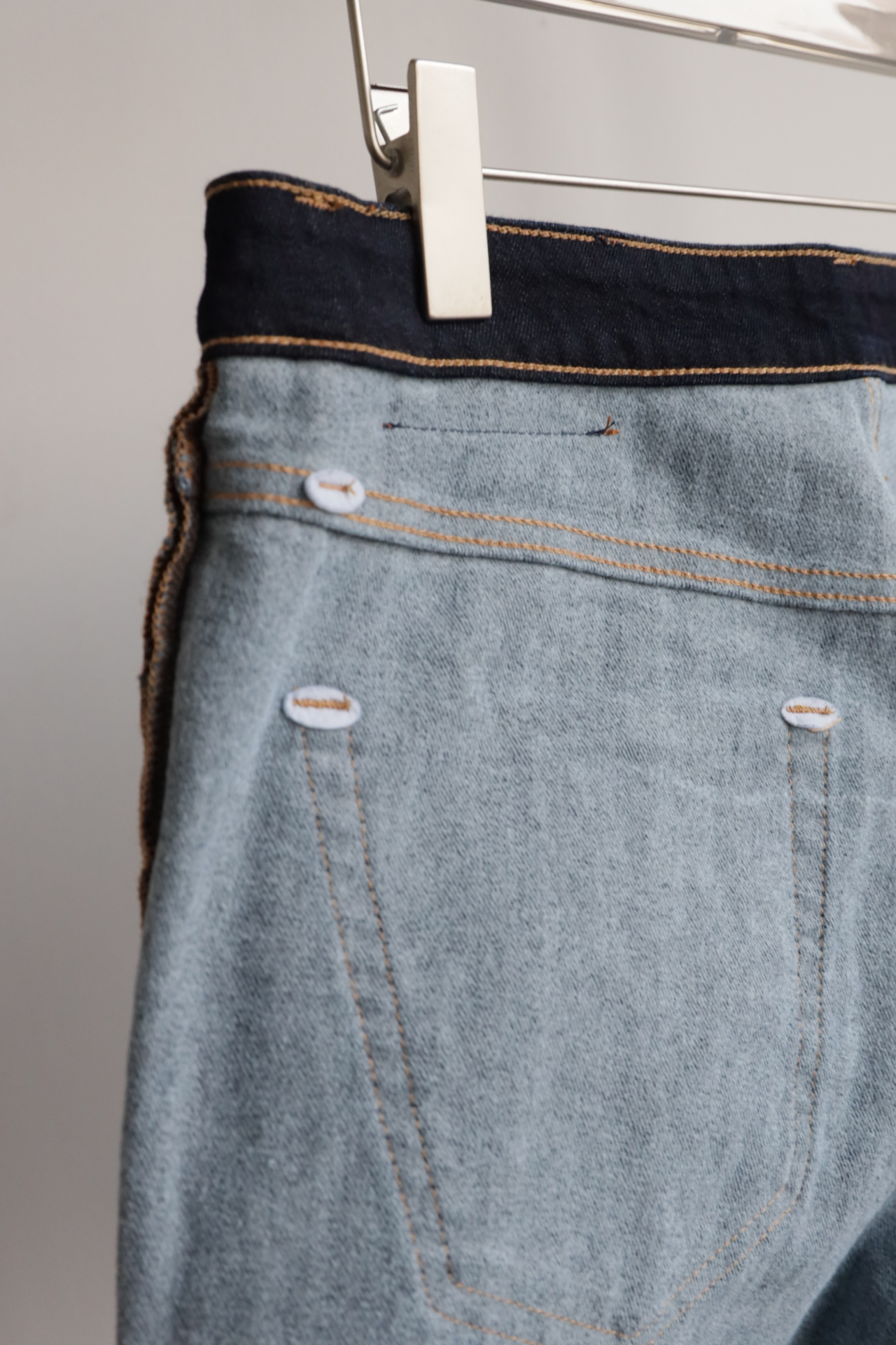 这是一款非常考验工厂车缝技术的单品!因为牛仔面料比较厚,需要特种机器来缝合