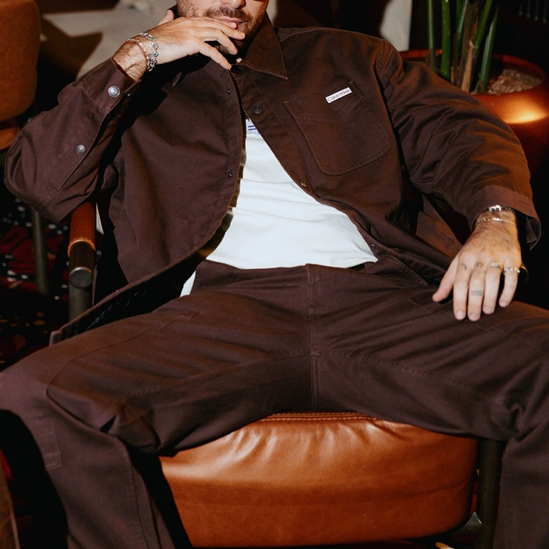 进口重磅丹宁,水洗100%全棉水洗布,质地柔软但有筋骨感,10多道工艺的水洗石磨,色泽布纹极具质感