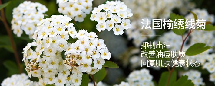 榆绣线菊中有调理人体皮脂腺的多酚成分,能有效调节皮脂腺的异常分泌,抑制炎症的产生,从根本上调理肌肤应激反应。安抚镇静肌肤,改善油皮痘痘肌肤。