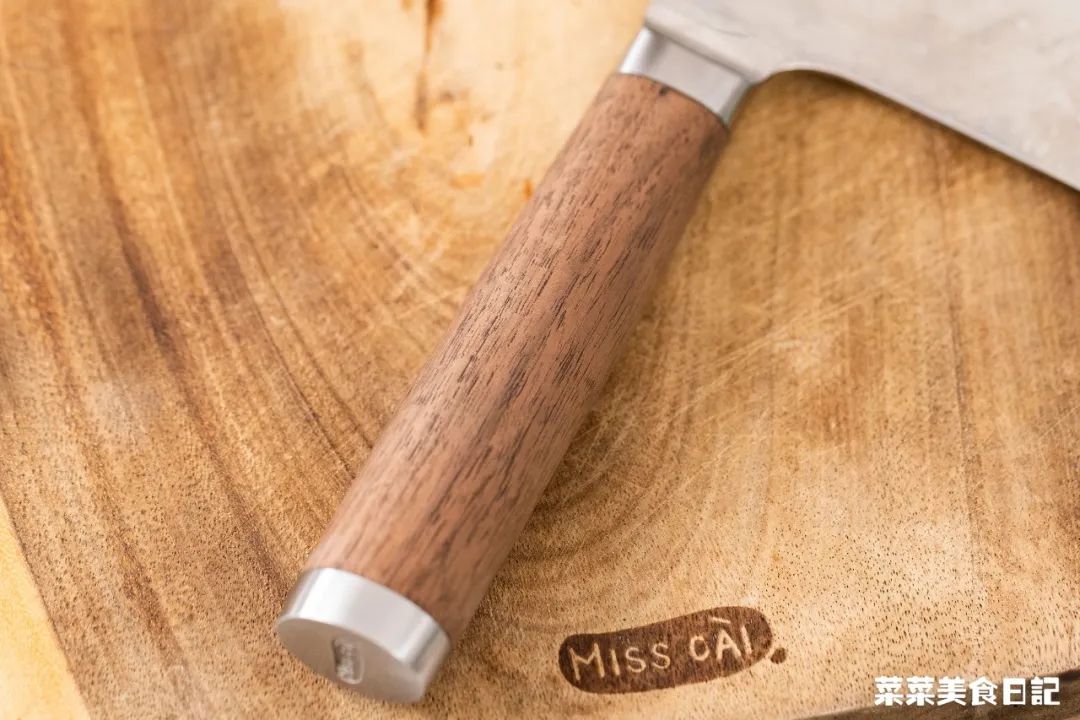 市面上买的刀,菜菜最烦的一点是,很多品牌喜欢把名字印在到刀身上,破坏了刀身美感。