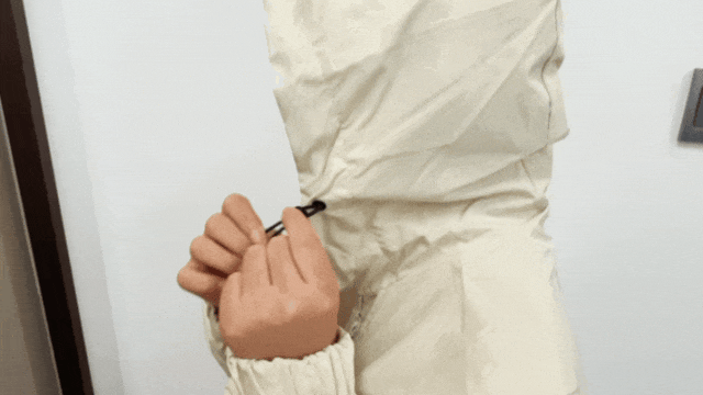超大防水帽檐,搭配可松紧帽绳,一拉就能阻止冷风灌入,刮风下雨都不怕。