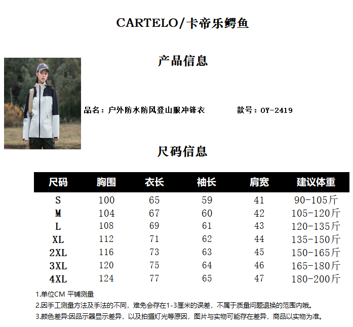 卡帝乐鳄鱼冲锋衣的版型,根据亚洲人体型专门设计的,穿着更合身、更有型、更显瘦!