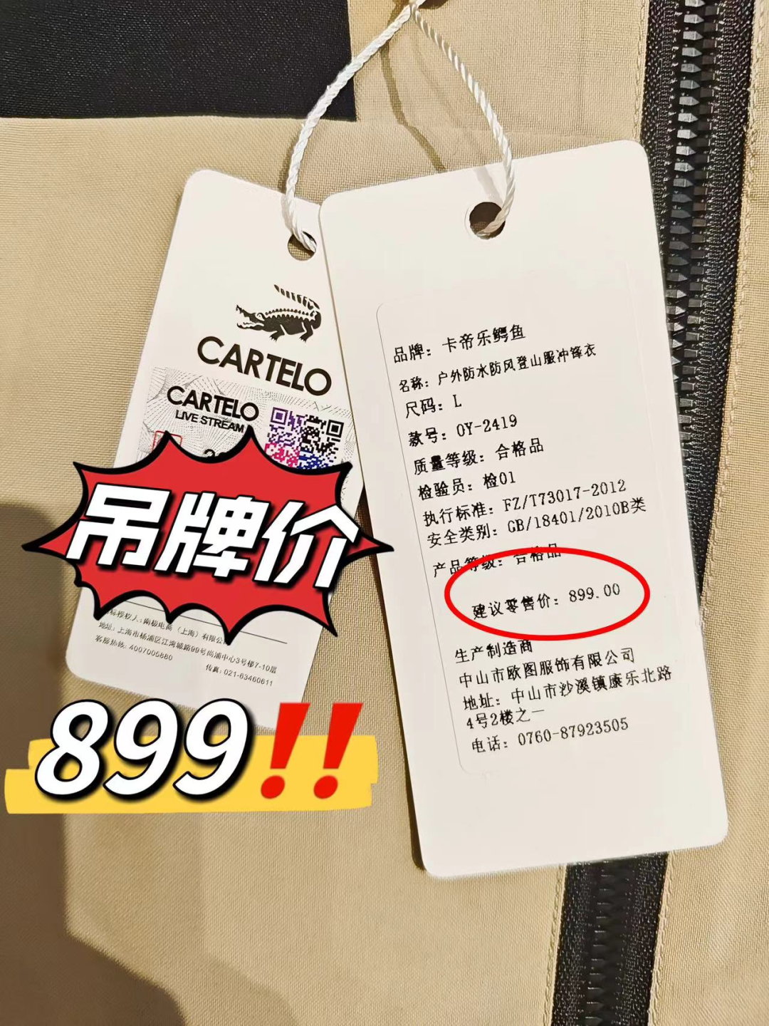 卡帝乐鳄鱼山系情侣冲锋衣,吊牌价都要899元/件!