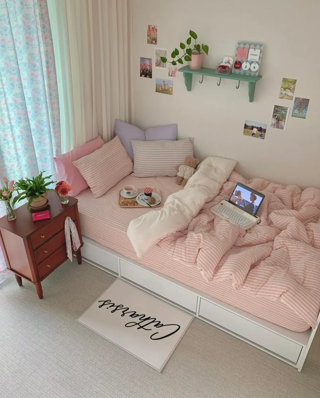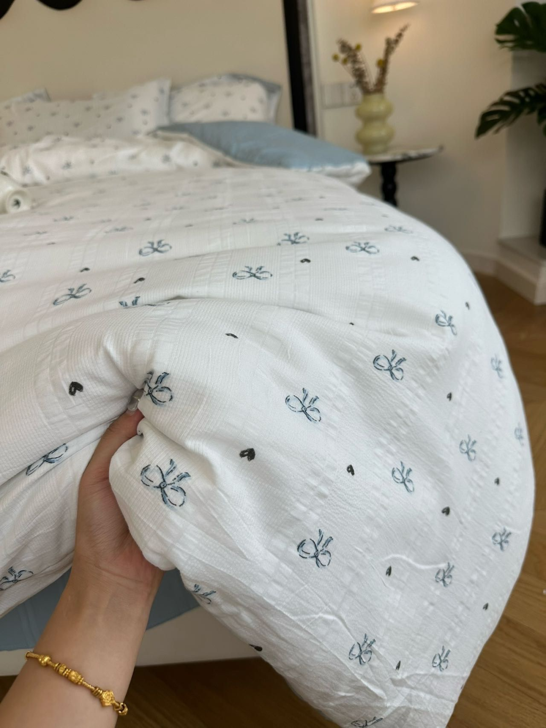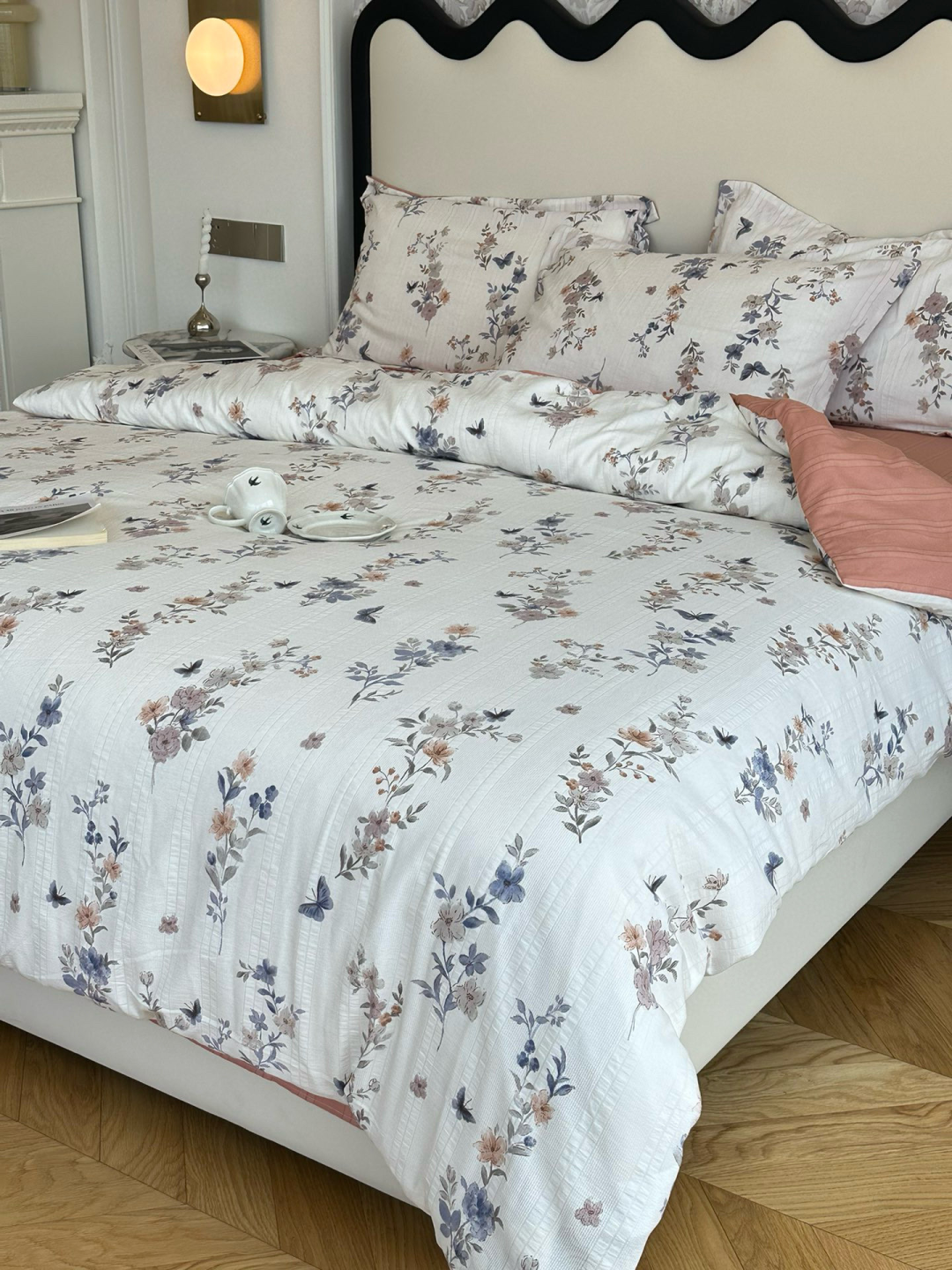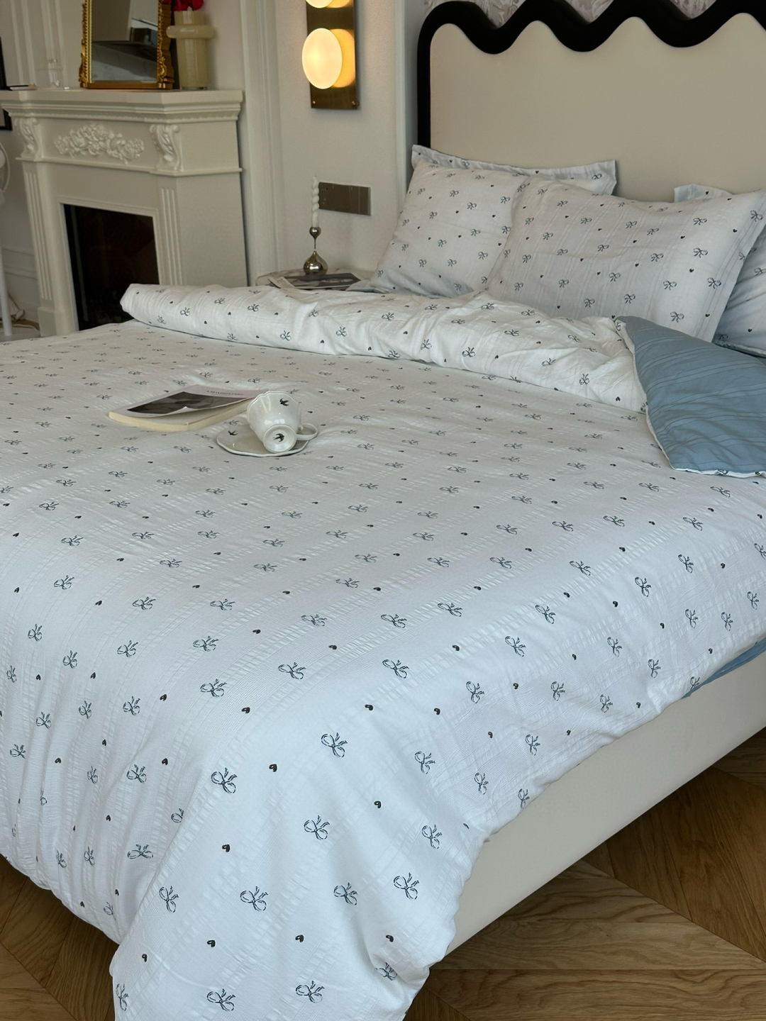 不愧是出口韩国KR的订单,这个设计师太懂我们了,设计的小蝴蝶结也这么讨人喜欢,妥妥的韩女温暖系房间搭配。