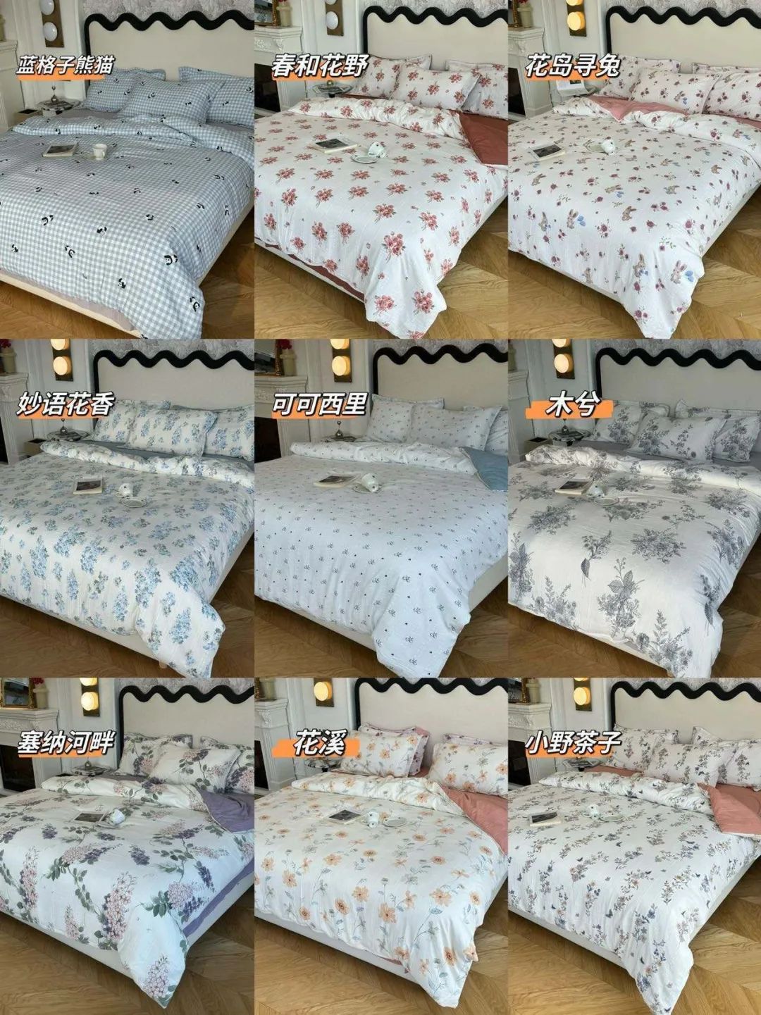 各种风格都给大家安排了,整整9种花色,任选一套都能撑起整个卧室的颜值!