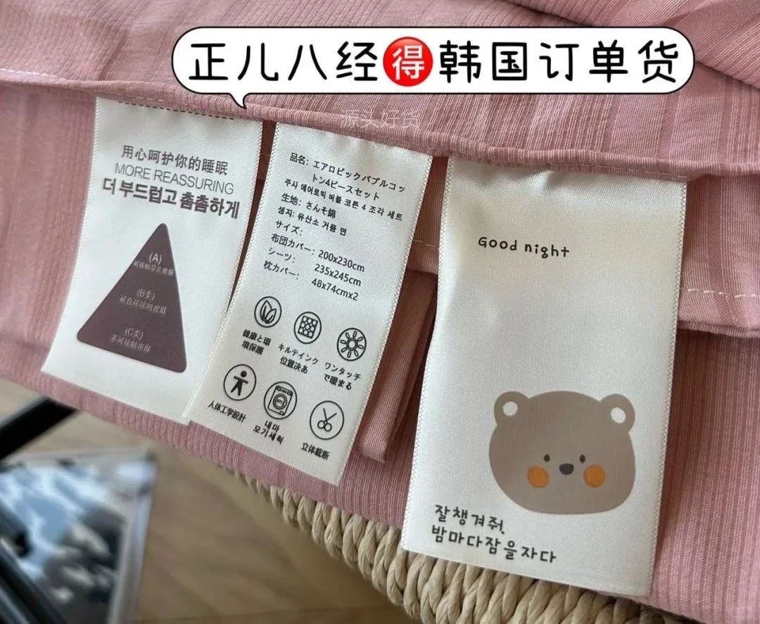 产品是A类材质,因产品是出口日韩产品,水洗标是日语+韩语,介意勿拍!