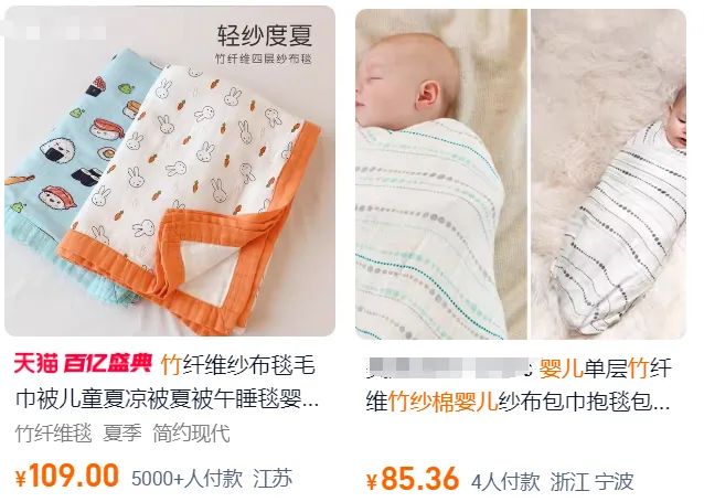 你能看见很多小孩的吸汗巾,薄被子都是用这种面料制作的!