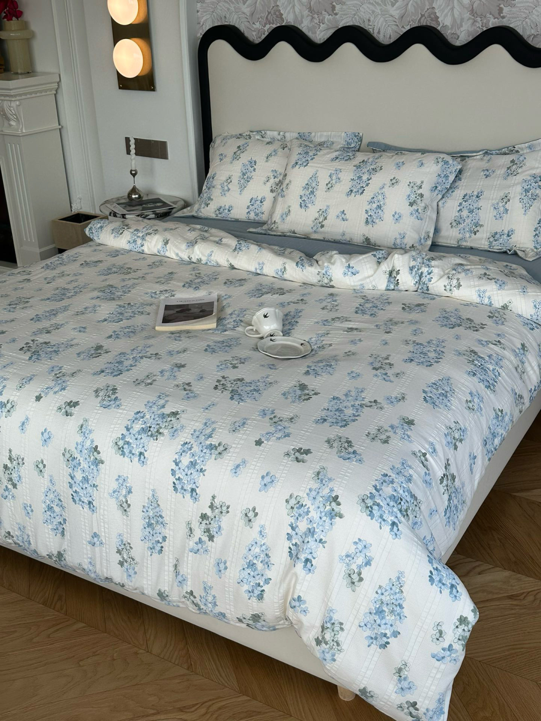 浪漫又温柔的蓝色绣球花,打造小清新卧室(氛围感真的好棒,每天回家都能被治愈的感觉~软乎乎的面料,睡起来是真舒服!!