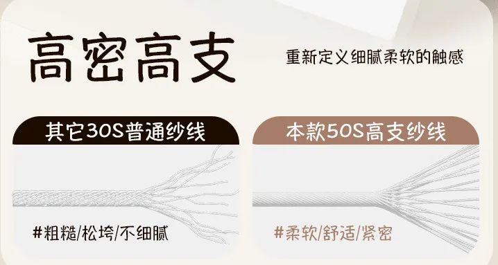 细腻柔软,50支纱线高密高支。穿起来就像被云朵轻轻包裹住那样~