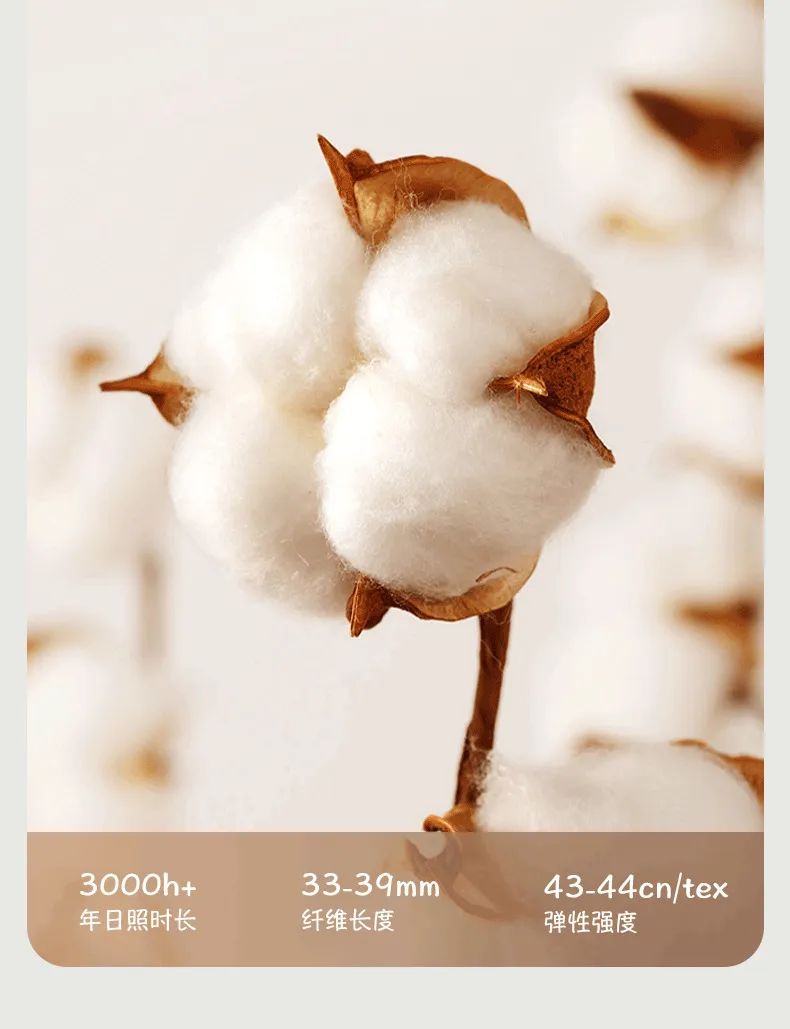 精选晒足了太阳的“棉中黄金”——新疆长绒棉,纤维长度是普通棉花的1.3倍,堪称透气吸汗的王者!