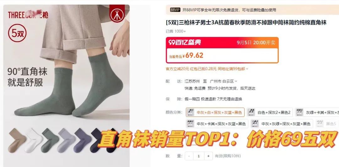 由于直角袜对工艺的要求更高,现在能做直角袜的工厂少之又少,某宝的同款直角袜都要69/5双!
