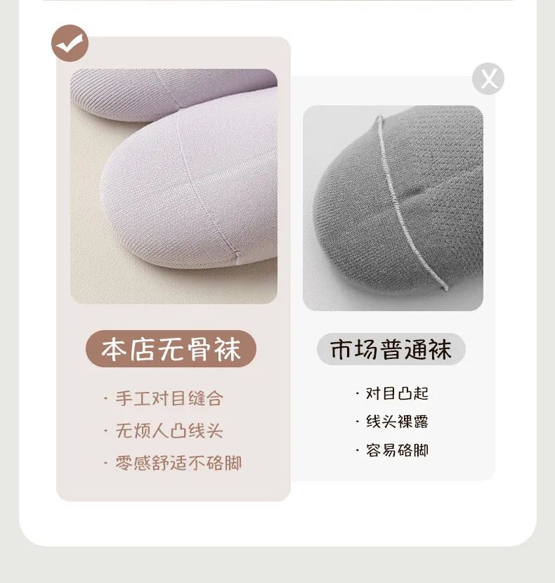 与传统机器生产的袜子不一样,手工无骨缝制技术,没有缝合处硬硬的“梗”,脚感超舒服!!
