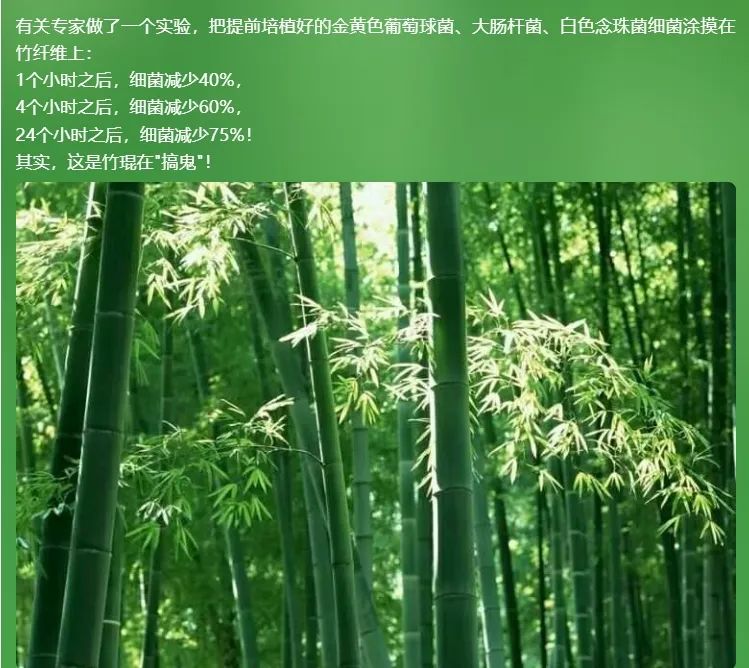 竹子纤维中含有一种名为"竹琨"的抗菌物质,具有天然抗菌、防螨、防臭的特性。