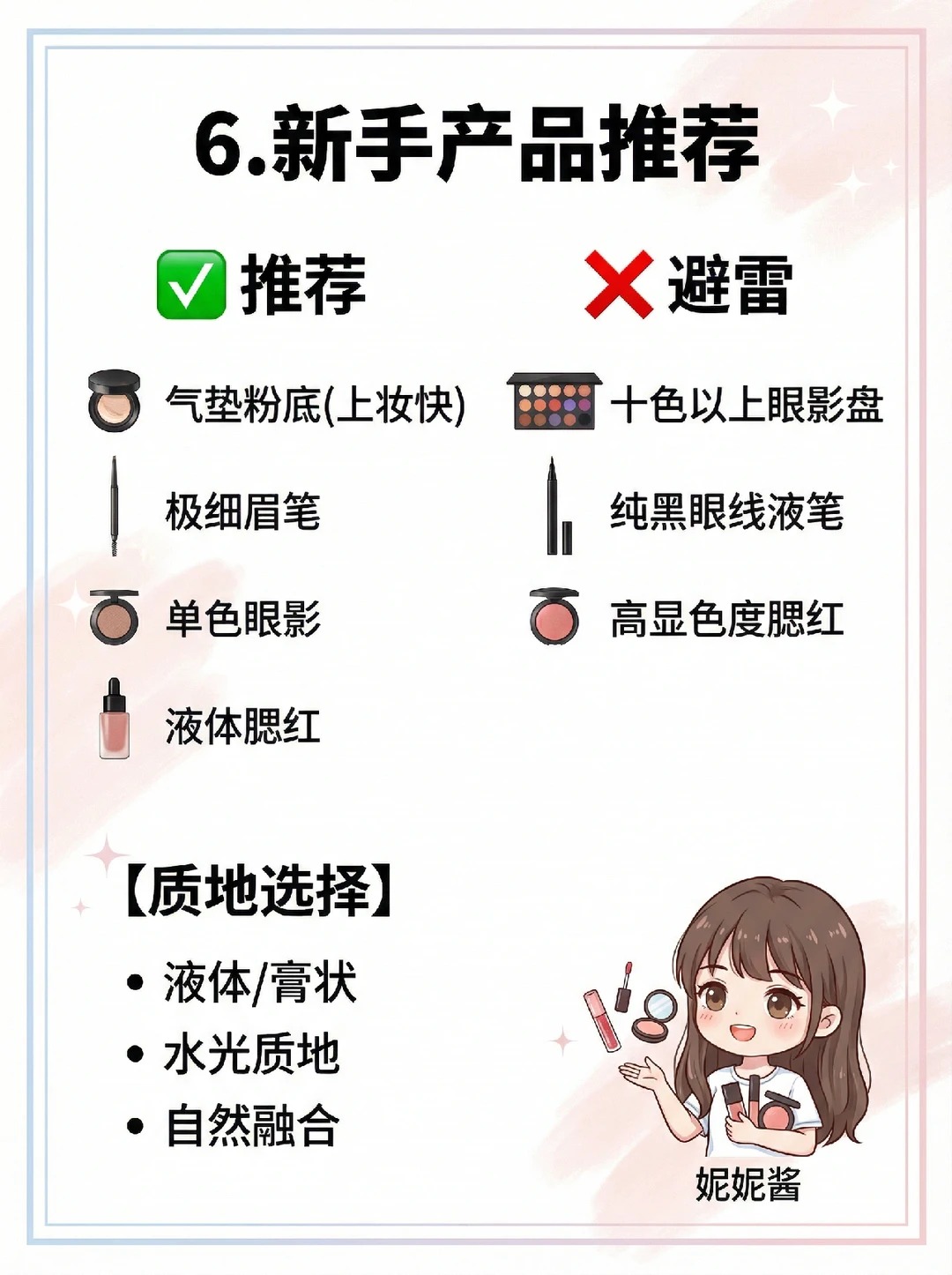 ✅ 推荐 气垫粉底(上妆快) 极细眉笔 单色眼影 液体腮红