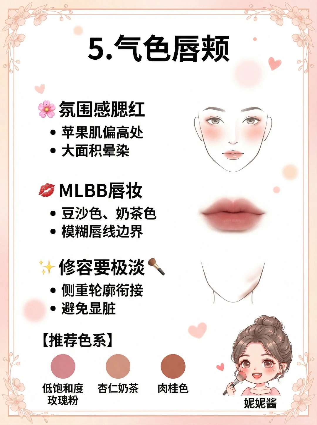 唇妆 豆沙色、奶茶色 模糊唇线边界