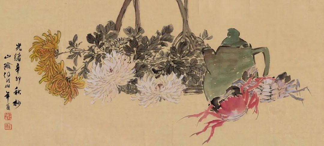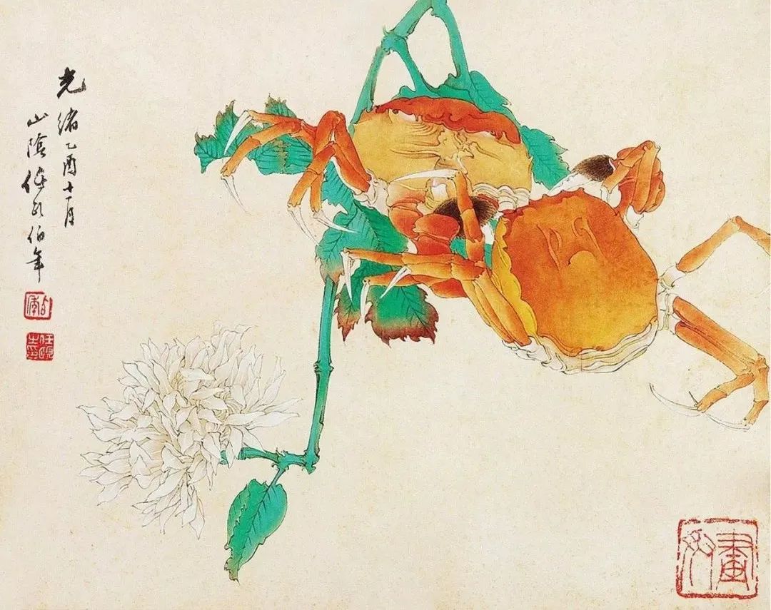 任伯年的作品,总是给人一种意想不到的感受与回味想象的余地。看着他笔下的螃蟹,有着惬意美好的感觉!