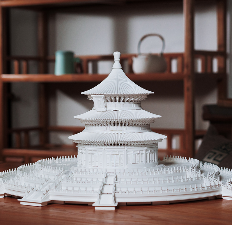 坐落于桌面的微雕版祈年殿,严丝合缝,没有胶水,却能自然成型。
