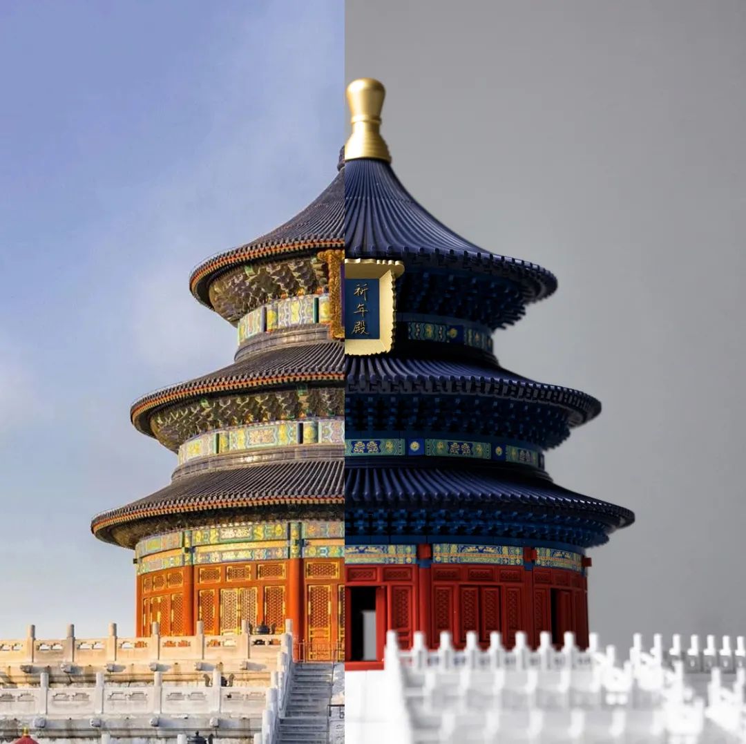 拼好的祈年殿就像正主一样色彩华贵,庄严气派,纯粹的色调凸显构建本身的精妙。