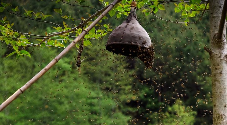 他就是靠着收蜂笼将散落在野外的中蜂蜂群,安顿在自家的果园,细心的照料。而每年的5-7月是最合适进行野外收蜂的。