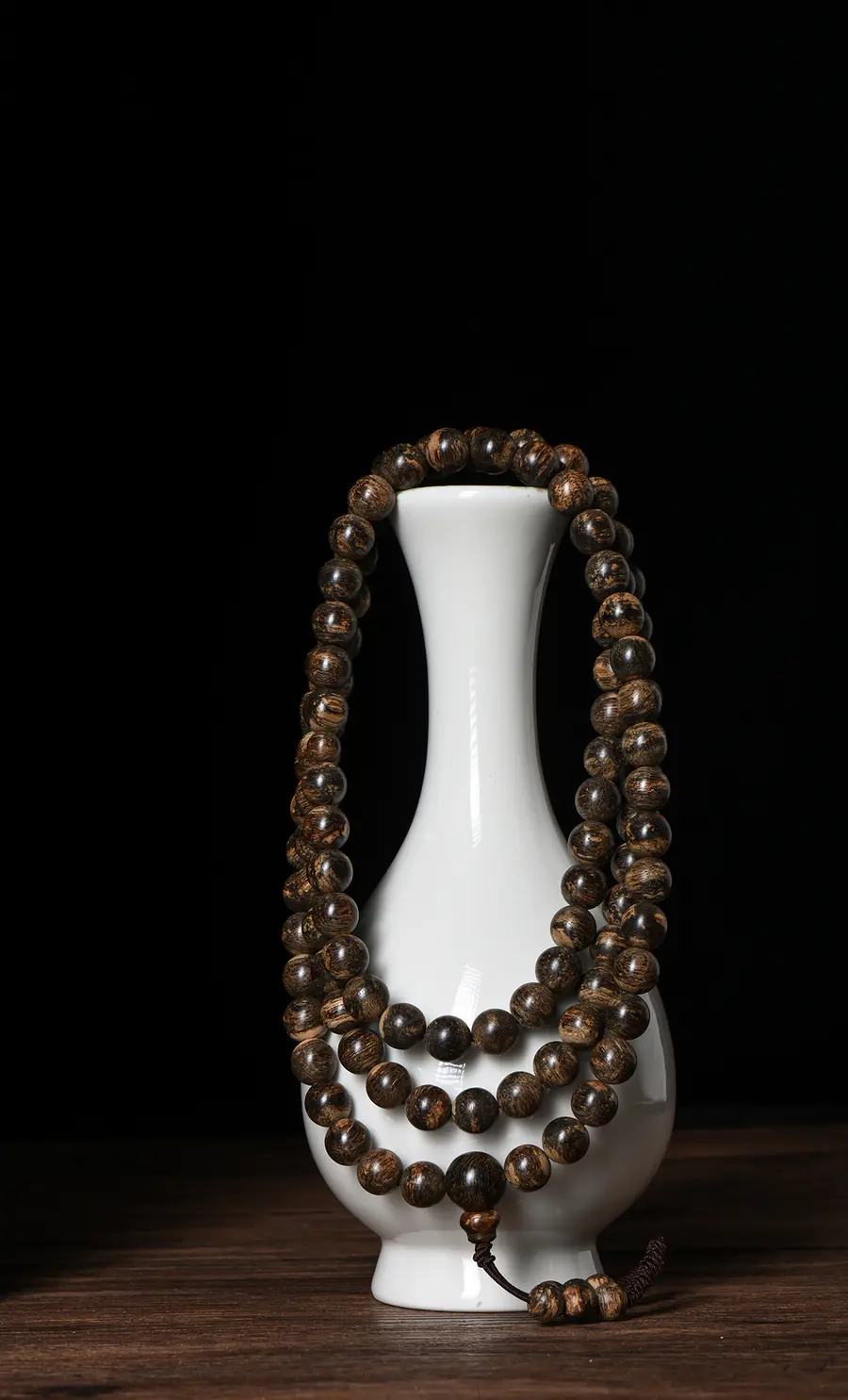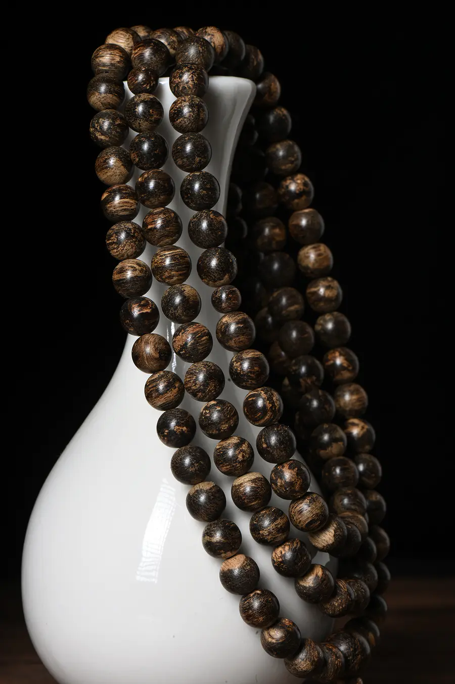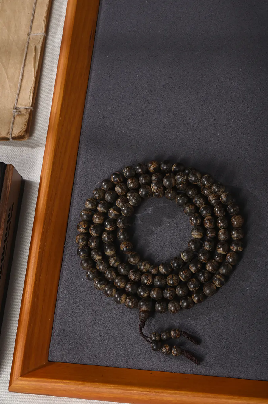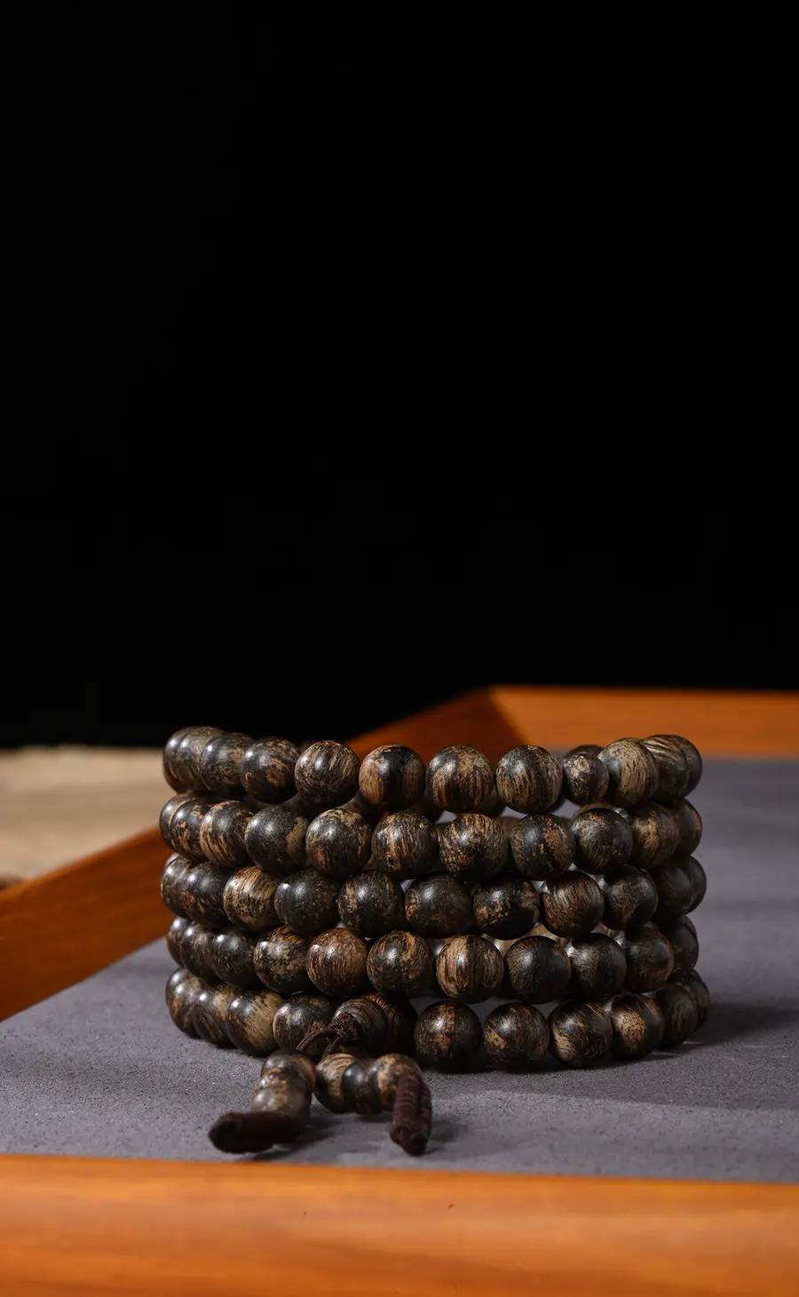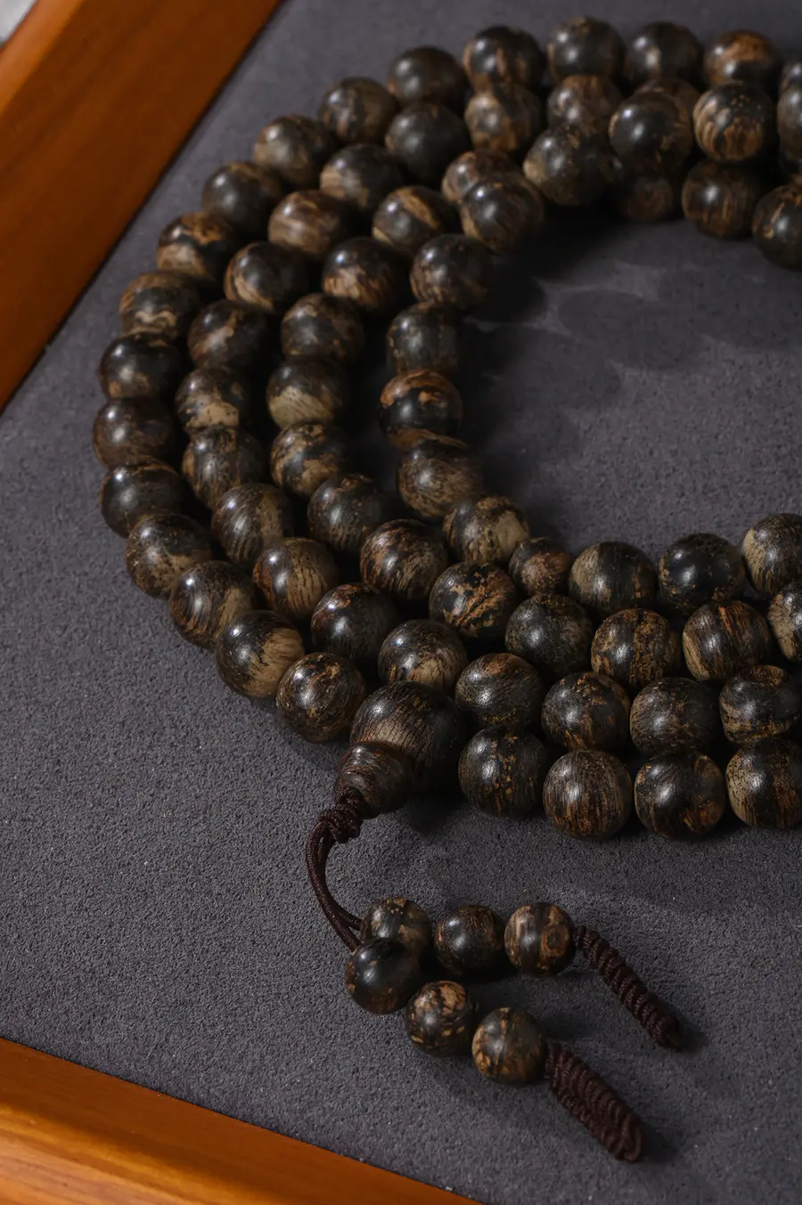 天然达拉干黑棋沉香佛珠 沉水级 SP12516