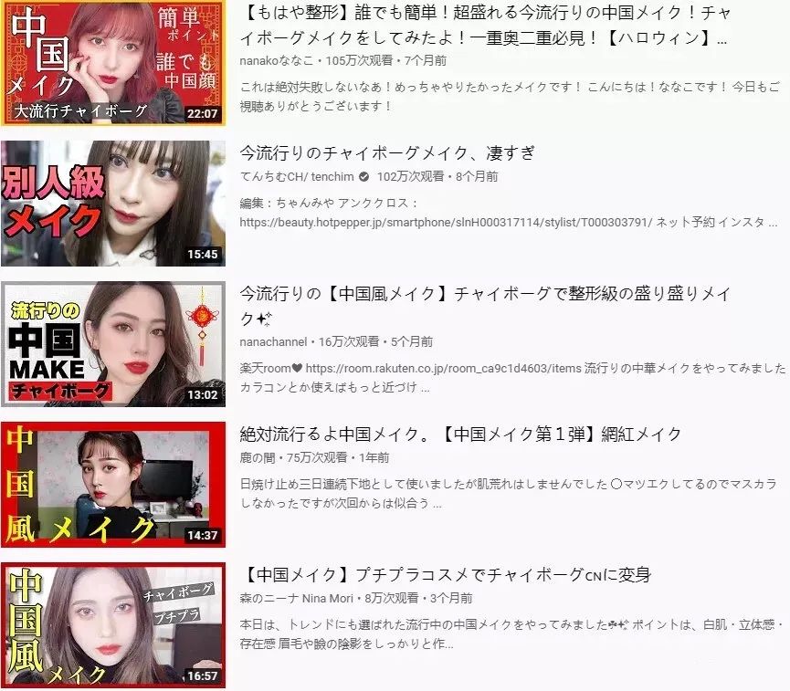 在外网上随手输入“中国メイク”,就会弹出一大波“中国妆”教程。