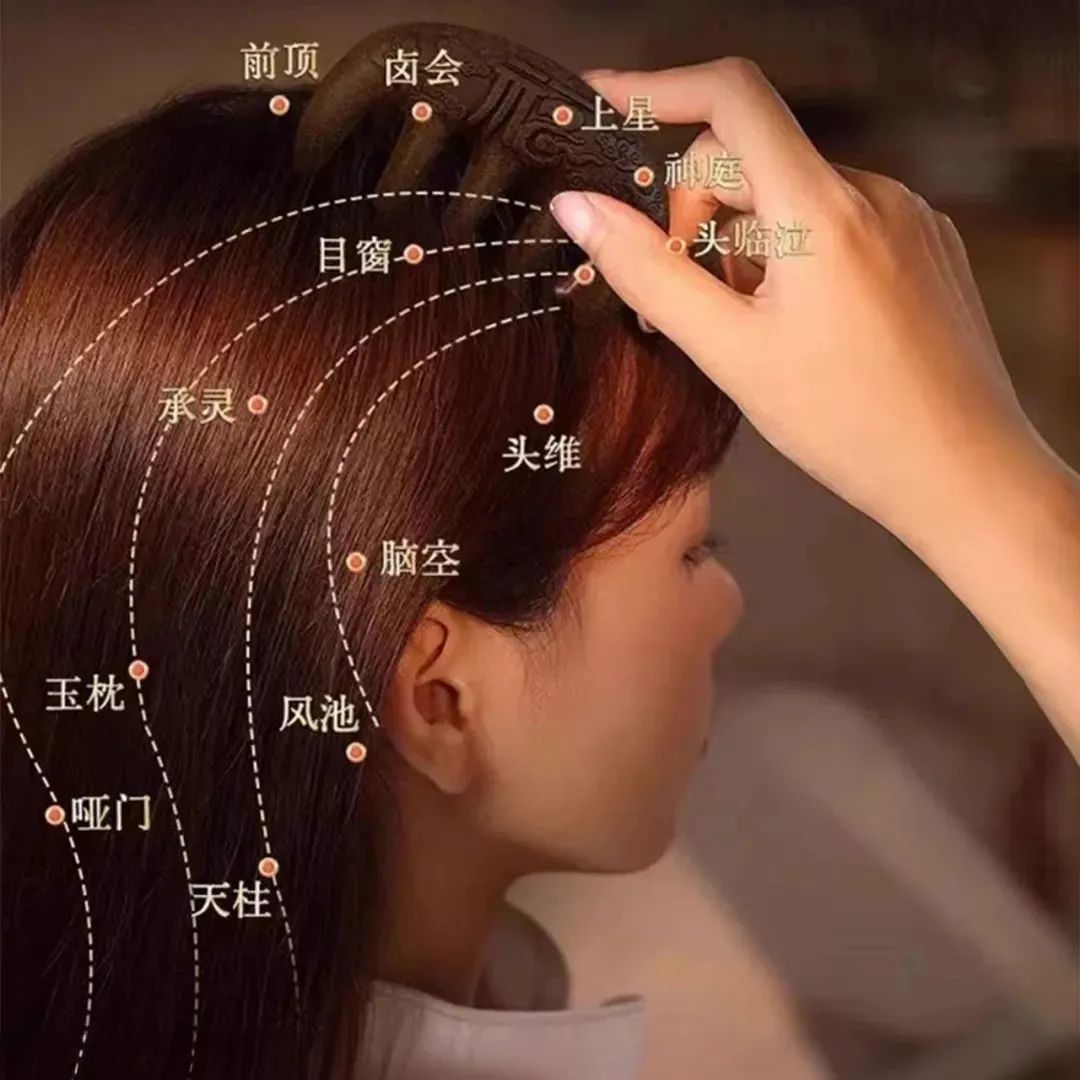 用梳子梳头,梳齿在头皮上来回刮动,可使头部众多穴位和经络受到反复摩擦和刺激,能疏~通气血、通经活络;还能刺~激这些穴位,并利用经络、腧穴的传导作用,达到疏散风寒、行~气~活~血、调整脏腑、平衡阴阳之功,对全身都有好处。