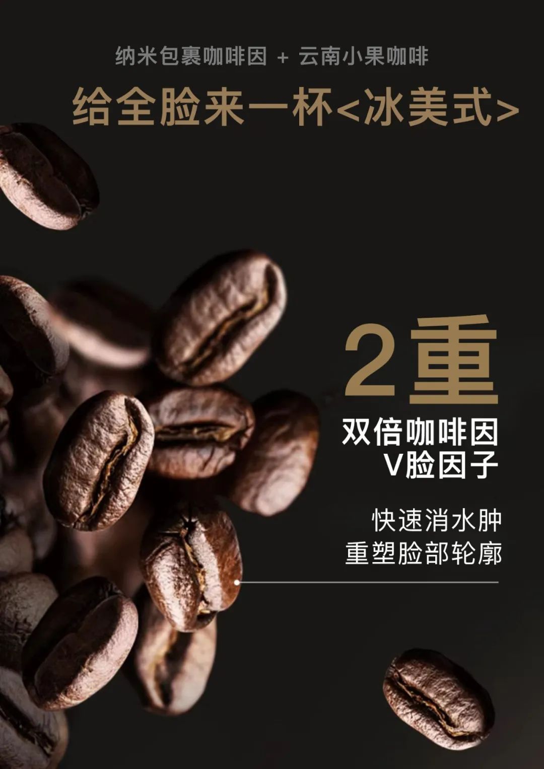 成分中添加了双倍咖啡V脸因子:纳米包裹咖啡因+云南小果咖啡。