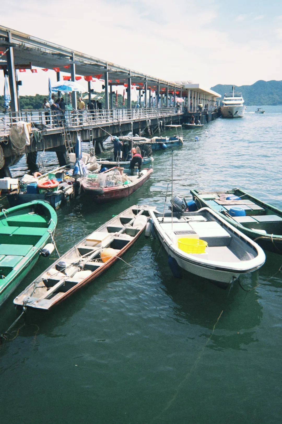 第三日一早过关到香港,先去了西贡,码头悠然质朴,还保留着传统渔村的氛围,沿岸停泊着各种小渔船,海水清澈,映衬着五彩斑斓的船只,微风拂过,游人们在码头边徘徊,感受西贡质朴的市井气息。