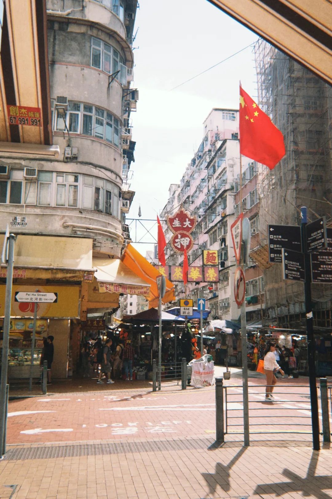 第六天早上也是自由行,随便挑了条路线慢慢地逛逛香港,香港街道不算宽阔,两边楼宇相邻延伸,走在深水埗的街道,霓虹灯牌高悬,色彩鲜艳,街市里小贩的吆喝声此起彼伏,路边的摊档琳琅满目,恰逢万圣节将至,街道上挂满了南瓜头。