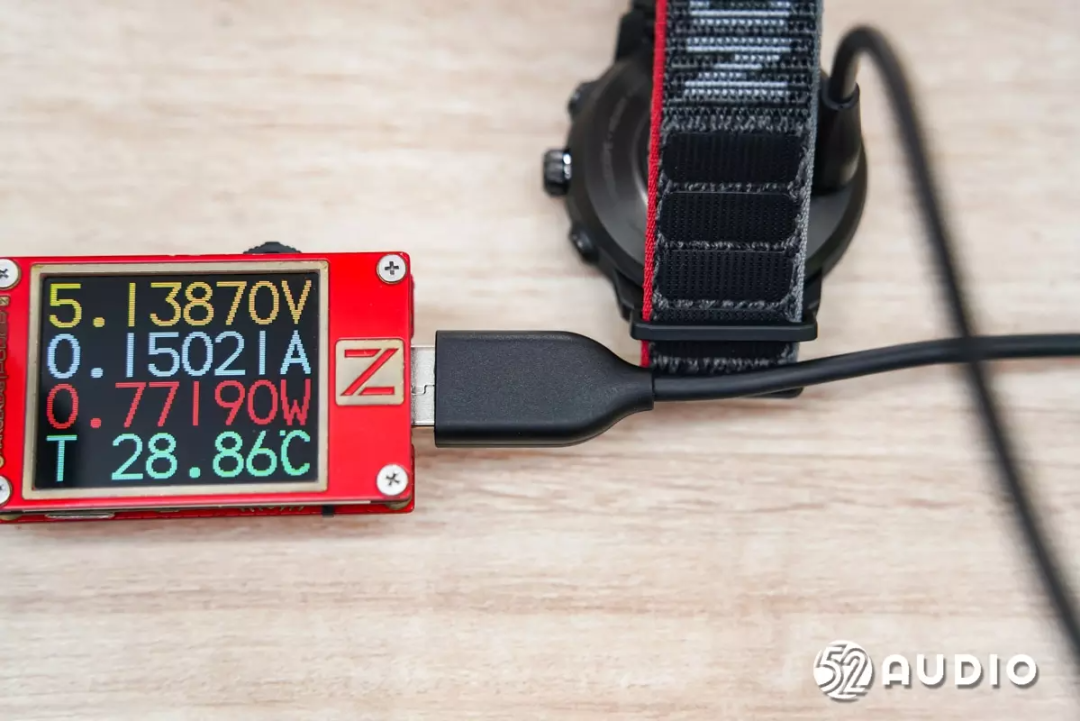 我爱音频网采用CHARGERLAB POWER-Z KM002C对COROS APEX 2进行有线充电测试,充电功率约为0.77W。