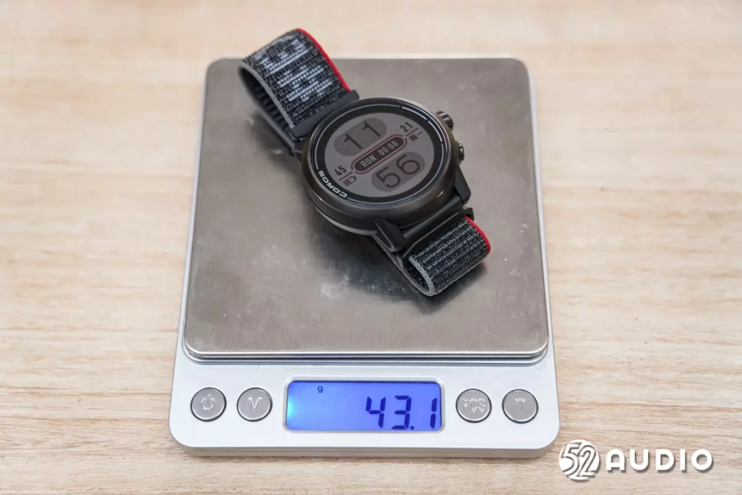 COROS APEX 2实测整体重量约为43.1克,轻量化的设计对比同类产品有相当大的优势,在日常佩戴中进一步降低存在感。