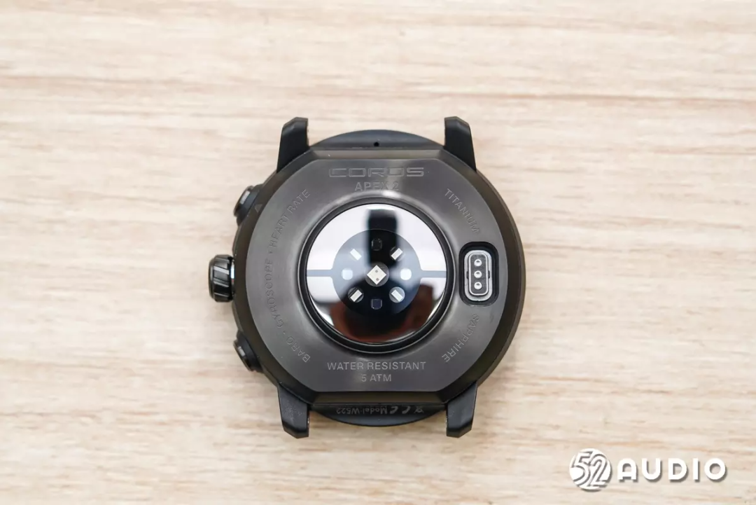 看完正面,翻到背面。上方刻有品牌Logo和产品名称,下方标注了5 ATM的防水等级,表明设备拥有50米防水性能。