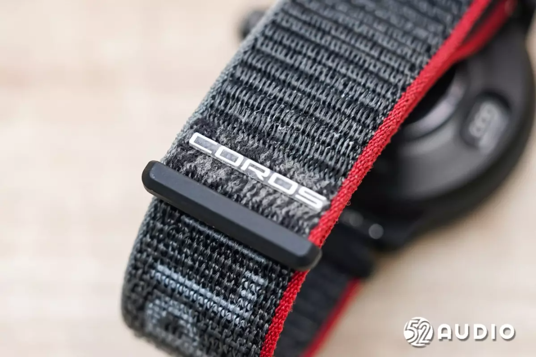 表带另一面的末端设有COROS品牌白色Logo。