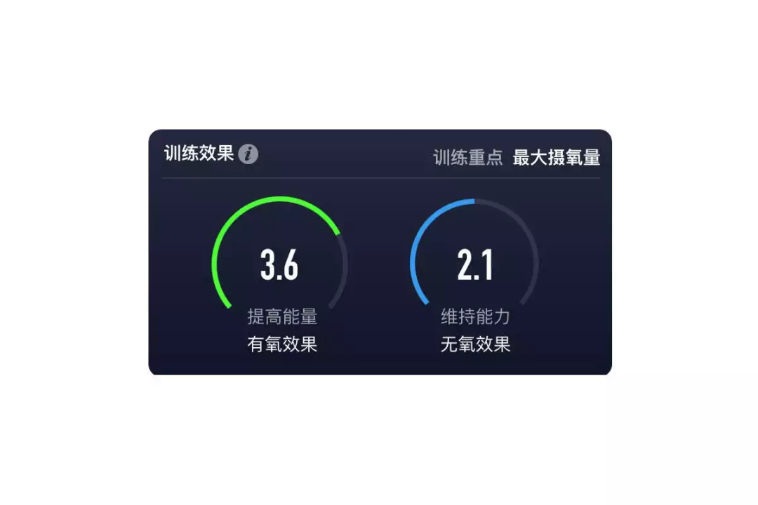 训练效果分为有氧效果和无氧效果,以乳酸阈为分界线,将每次运动对机体有氧能力和无氧能力的锻炼效果,以分数进行展示,在训练中帮助用户了解实时效果,根据目的作出调整。训练结束后,根据效果评分,了解每次训练成效。