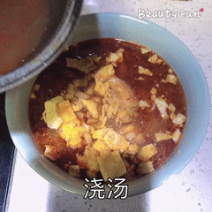 把沸腾的螺蛳汤浇入碗里,拌匀,可以开吃了!这个方法的好处在于,粉和汤是分开煮的,这样汤不会浑浊,酸笋和酸豆角那些不要放到锅里煮,不然酸笋的发酵味道会很重,很多人不喜欢。在柳州本地,也是煮好粉捞入碗里再加入配菜,最后浇一勺螺蛳汤。