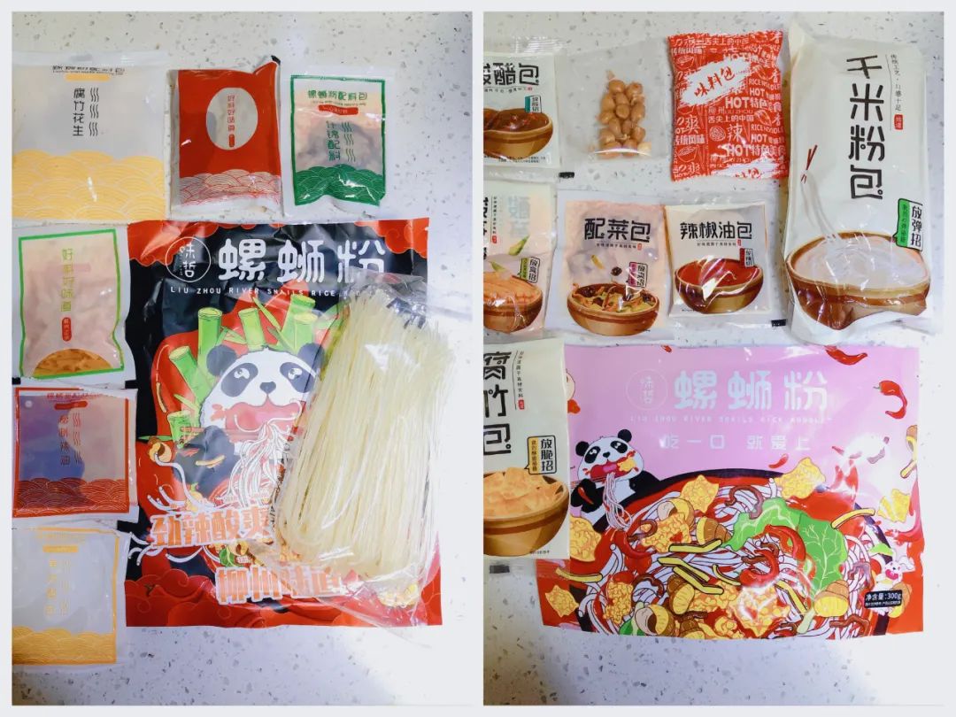 两款螺蛳粉一个叫小黑315克,一个叫小粉300克,看粉包和料包没什么区别,于是我就同时煮了2碗粉。