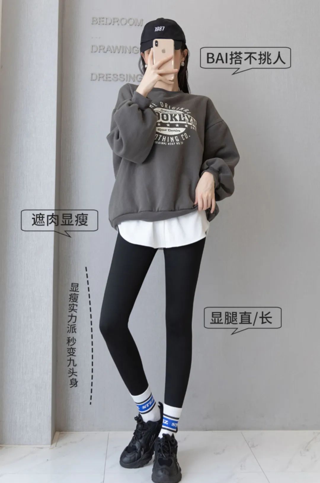 2.超弹鲨鱼皮面料,加绒不加胖,藏肉还显瘦,视觉上拉长腿线条,巨显高;