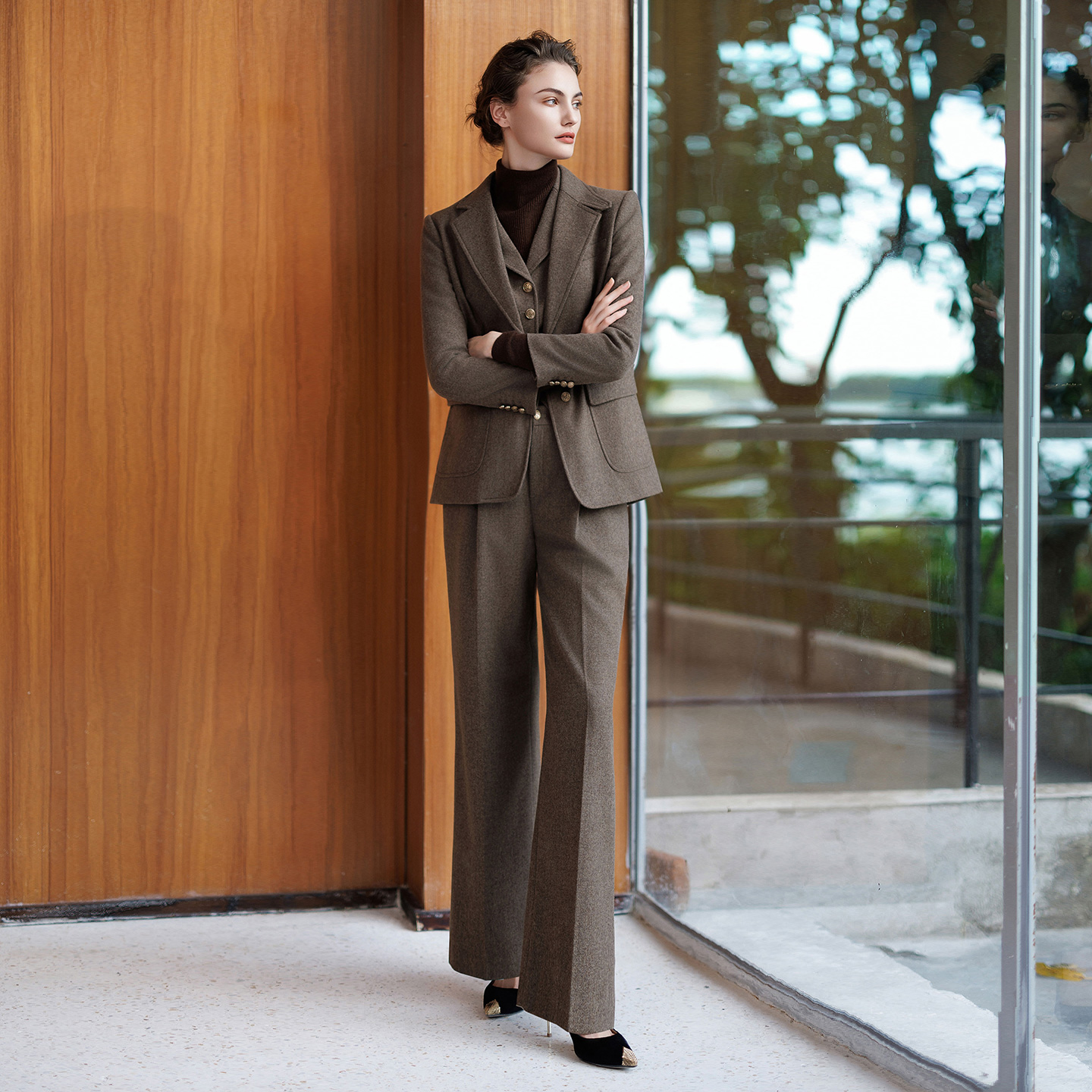 巧克力棕羊毛三件套:秋冬通勤的 “高级感作弊器”