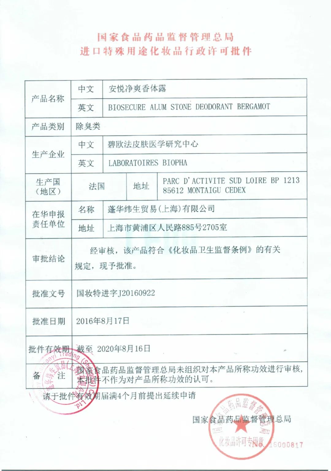 通过了国内的除臭验证,效果有保障!(有些止汗露只是普通化妆品证书,除臭效果无法保障,不建议大家购买哟~)