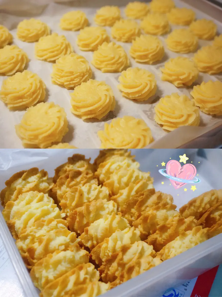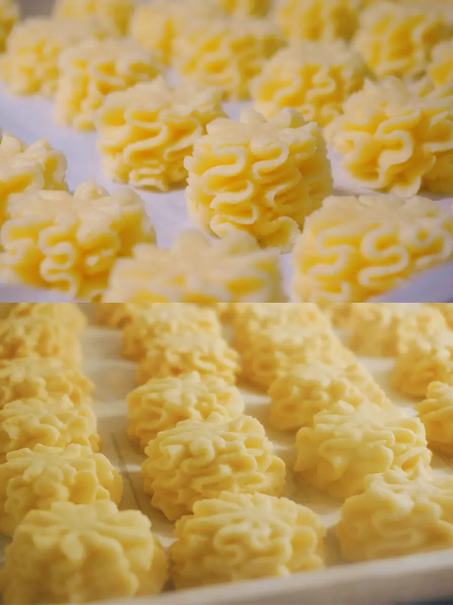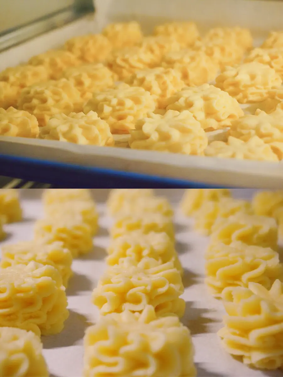 (低温+长时间烤,能让曲奇充分膨胀,内里更酥,不会软软的)