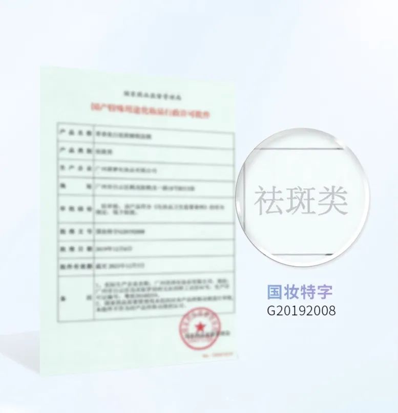 并经过权威机构100多项检测,1年多的功效审核后,成功拿到了国家药监局颁发的美白特证。
