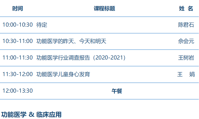 | (含会议资料费+18日、19日喜来登商务午餐+18日晚宴、及《2020-2021功能医学行业调查报告》1本) | (含直播+回放+纸质版《2020-2021功能医学行业调查报告》1本) |