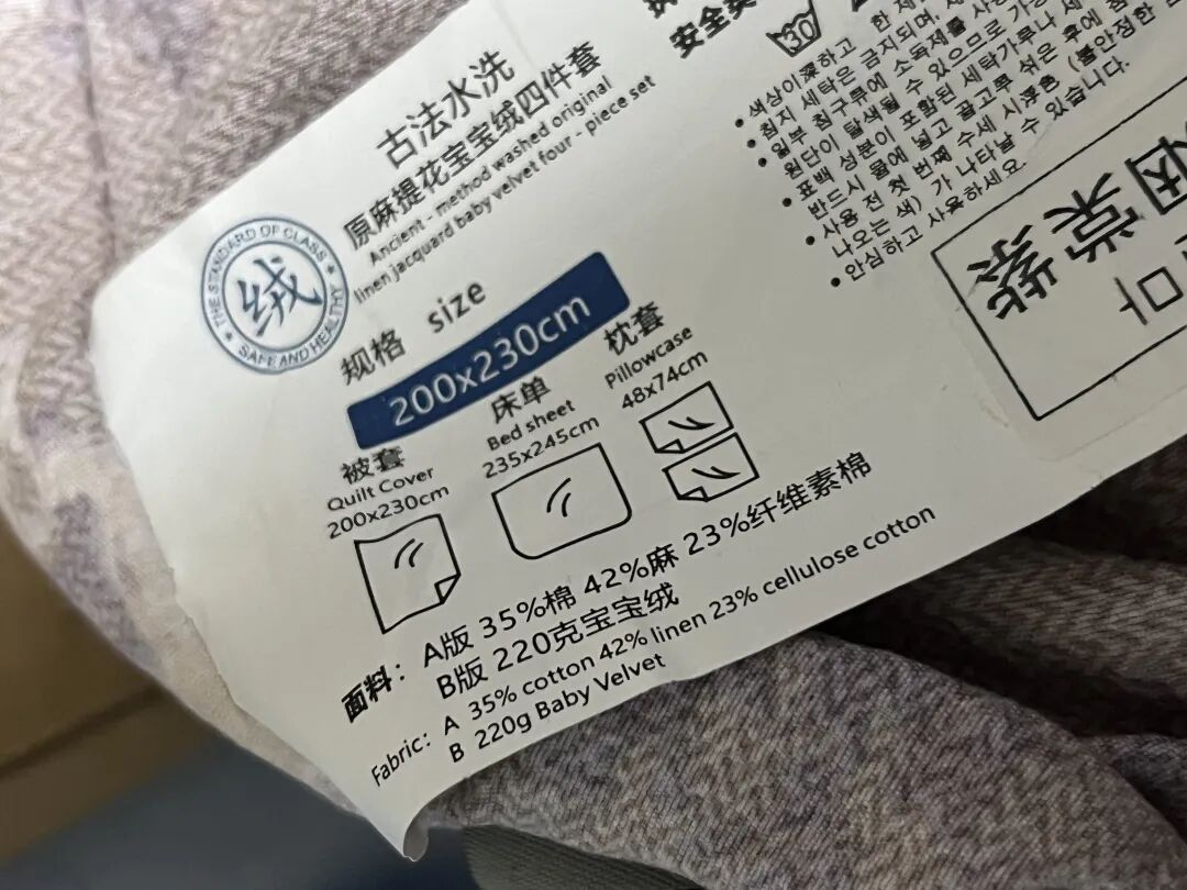 之前没买过这样的四件套,这次真的被种草了,一面加绒一面麻感,天冷天热都能盖!