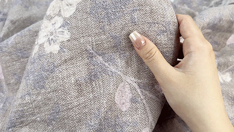 再用手感受下面料,抚摸A面指尖传来的是棉的柔软+麻的肌理感,让人越摸越上瘾。