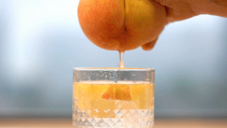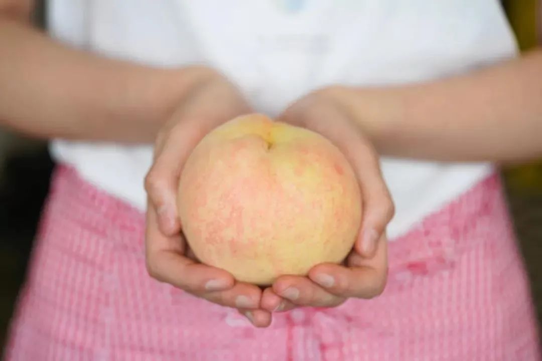 撕个小口,汁水会兜不住地往外溢,轻松挤出一杯鲜桃汁!