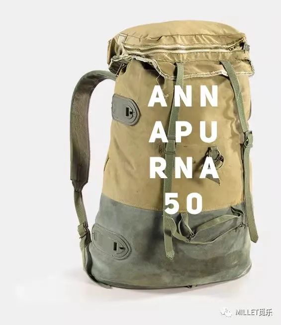 1950年6月3日,法国的两位登山家(Louis Lachenal 与Maurice Herzog),背着MILLET觅乐的Annapurna 50登山包,在未使用辅助氧气的情况下,登顶安纳普尔纳I峰(8091m),这是人类首次登上8000米级山峰。