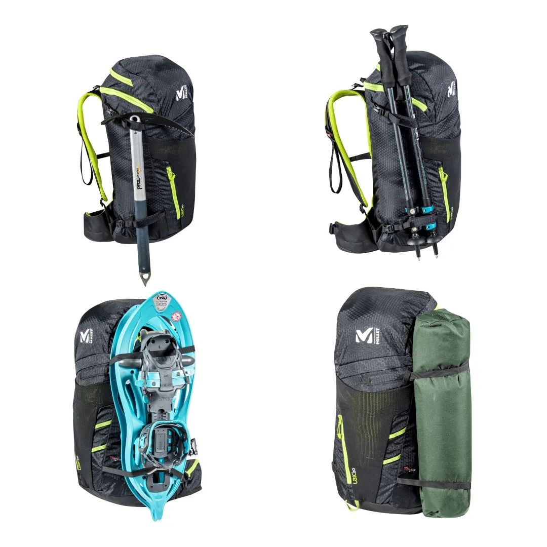 没错,这是一个20L小背包能外挂的东西!不仅可外挂小而轻的物品如:登山杖、冰镐,也可外挂帐篷、睡袋、雪鞋等大一点、重一点的装备,而且连雪板这种超大号的,也能轻松hold住。