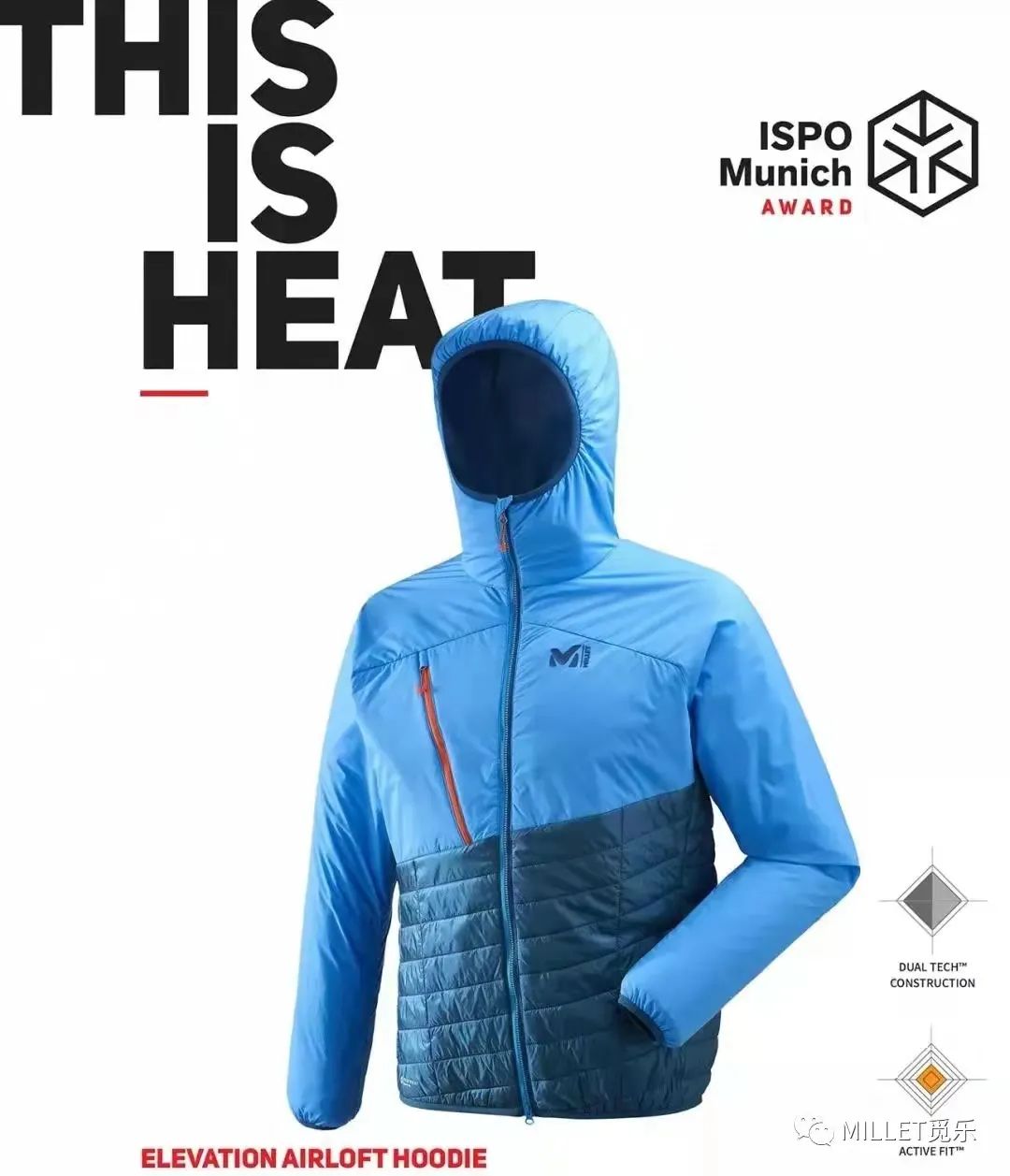 2018年,斩获ISPO大奖的Elevation Airloft Hoodie保暖棉服,采用了当时最为先进的透气保暖材质Polartec® Power Shield ™:
